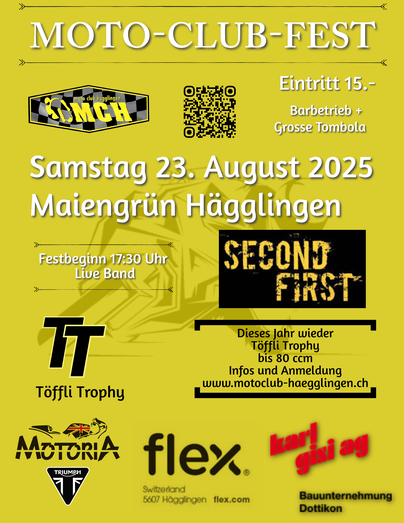 In diesem Jahr findet das bekannte Moto - Club - Fest wieder auf der Maiengrünwiese in Hägglingen statt!